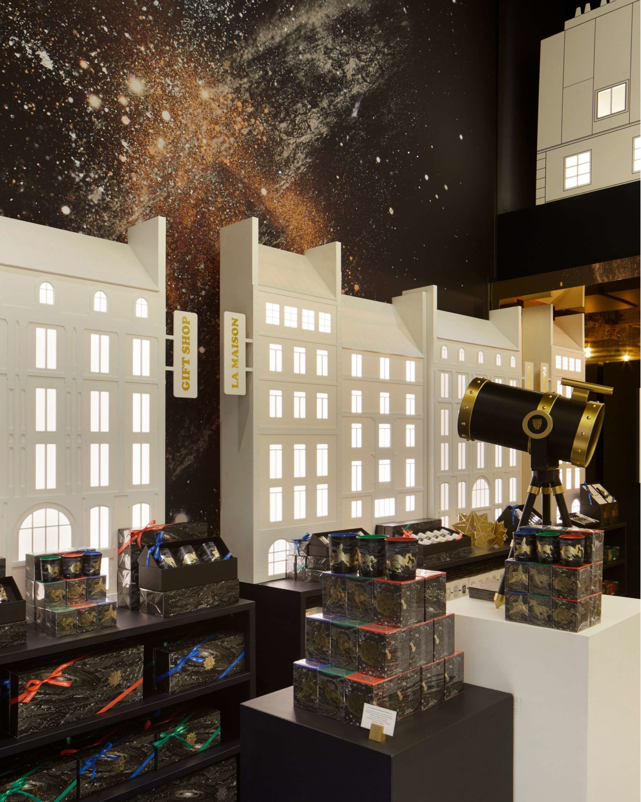 et propose un voyage dans un ciel étoilé, où se forment les constellations. Cette boutique éphémère est conçue pour plonger les Parisiens dans une atmosphère magique et dans l’esprit de Noël.