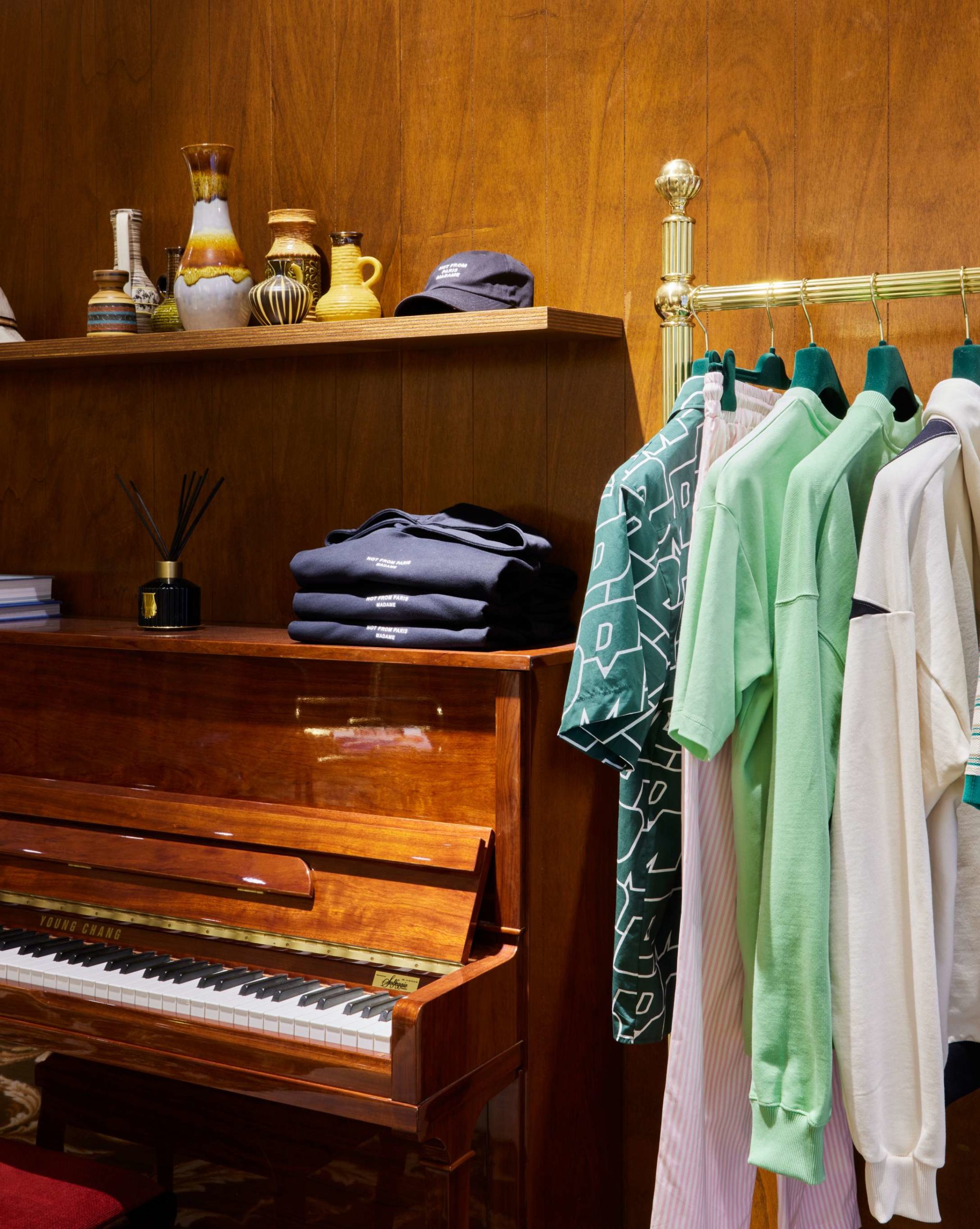 en 2021 qui marque les débuts d’une association forte et pérenne. La rue Charlot à Paris se transforme pour l’occasion en véritable studio feutré des années 70. Premier point d’ancrage dans le physique où l’on retrouve l’ADN de la marque : un style singulier, un goût pour le mobilier et un univers rétro.