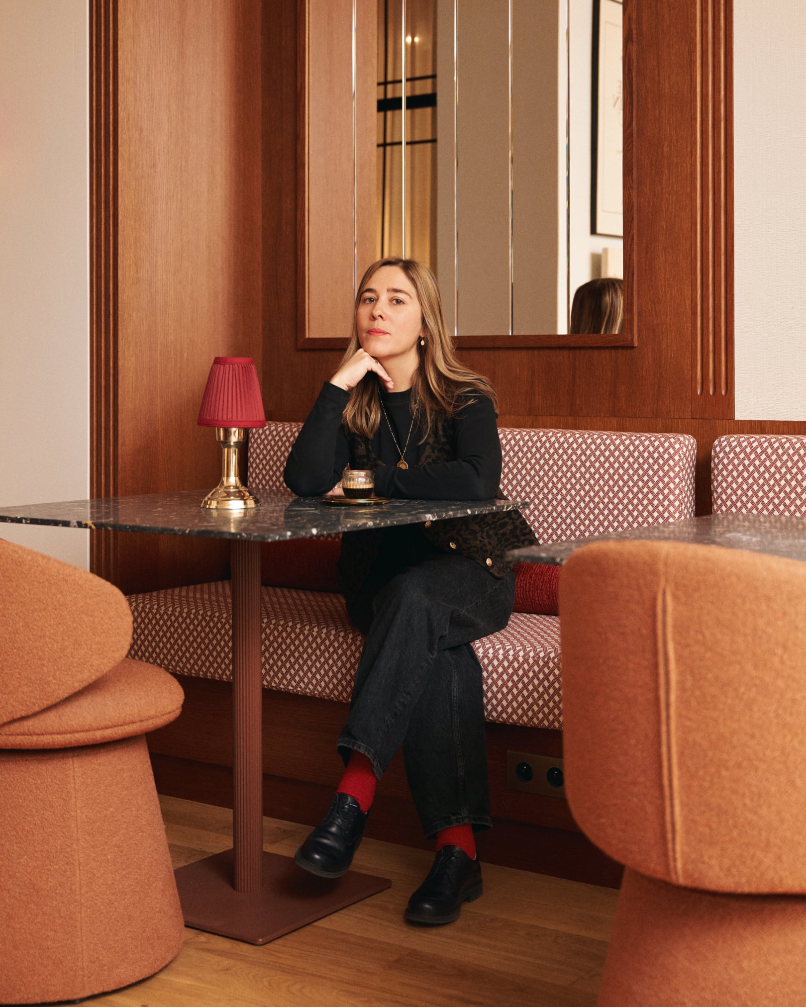 L’ambiance de l’espace d’accueil évoque l’intérieur cossu d’un bistrot parisien où Martin Kretz a ses habitudes : un lieu de rendez-vous vivant, propice aux premiers échanges. Cet espace rend hommage à la ville où tout a commencé, en reprenant les codes du bistrot tout en les réinterprétant dans une écriture contemporaine.
