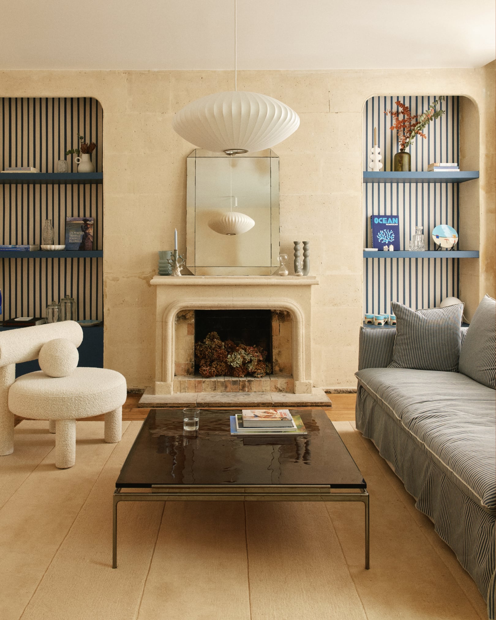 Le salon Trouville rend hommage à la maison de vacances normande de la famille, lieu de rassemblement et de transmission, où s’exprime une passion partagée : le kitesurf. Inspiré par l’esprit du père de famille, guide et initiateur, cet espace évoque l’air iodé, la nature et la liberté des journées passées au grand air.