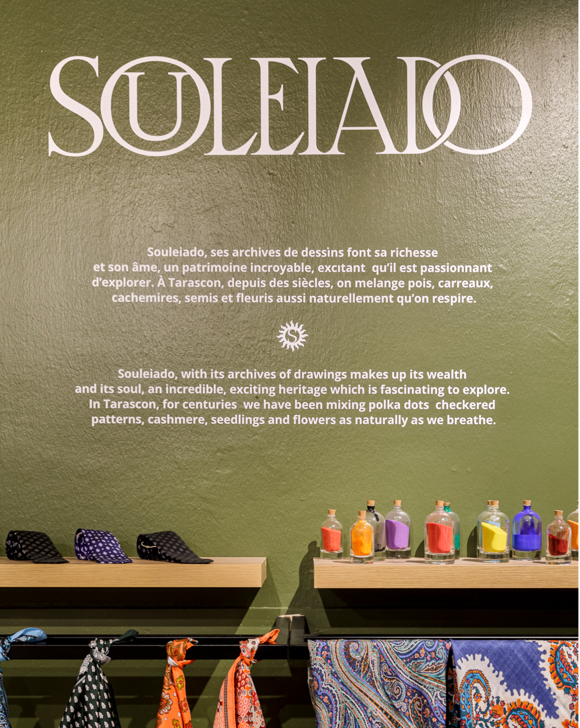 son linge de maison et son prêt-à-porter, Souleiado fait parti du « patrimoine français » depuis de longues années. Pour eux, nous nous approprions leurs codes afin de créer une expérience physique totalement immersive.