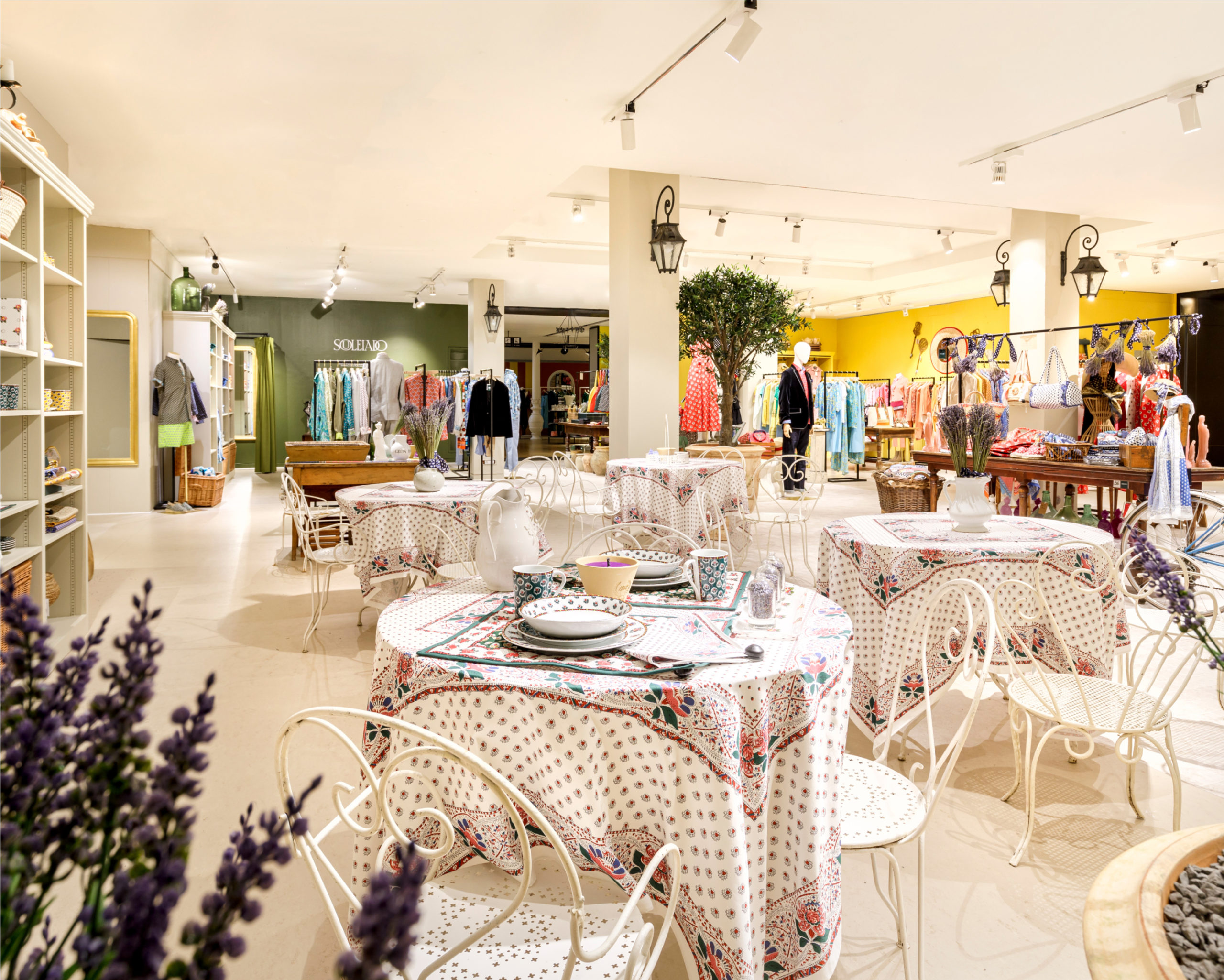 autour des fleurs, des oliviers, du ciel bleu, d’une colorimétrie riche et estivale au sein d’une véritable place de village du sud de la France. Nos équipes ont imaginé sa rue pavée, sa fontaine en pierre, son véritable café et ses pots d’Anduze. Un corner né des rayons du soleil, qui signe grâce à sa scénographie importante, un nouvel essor pour la marque française.