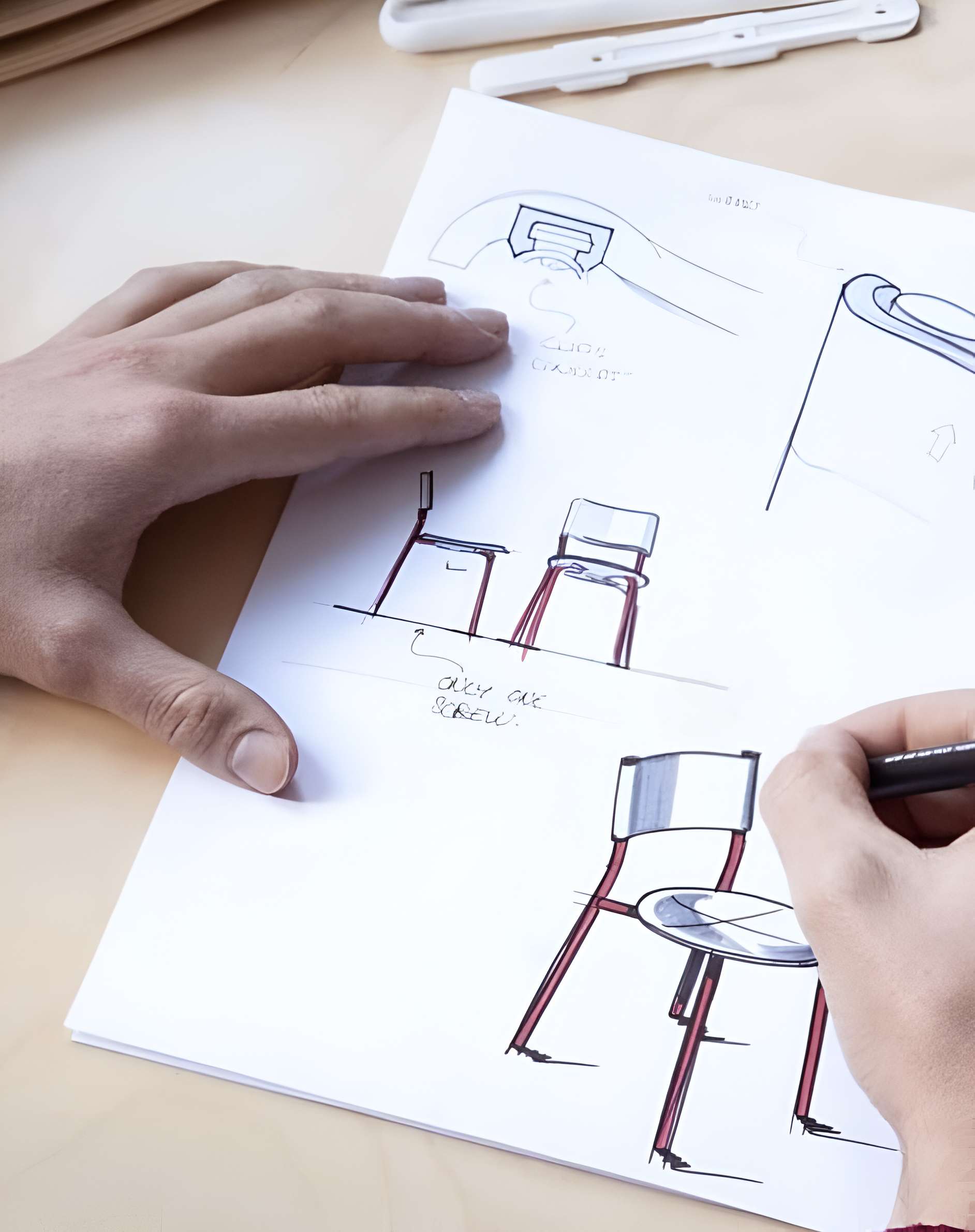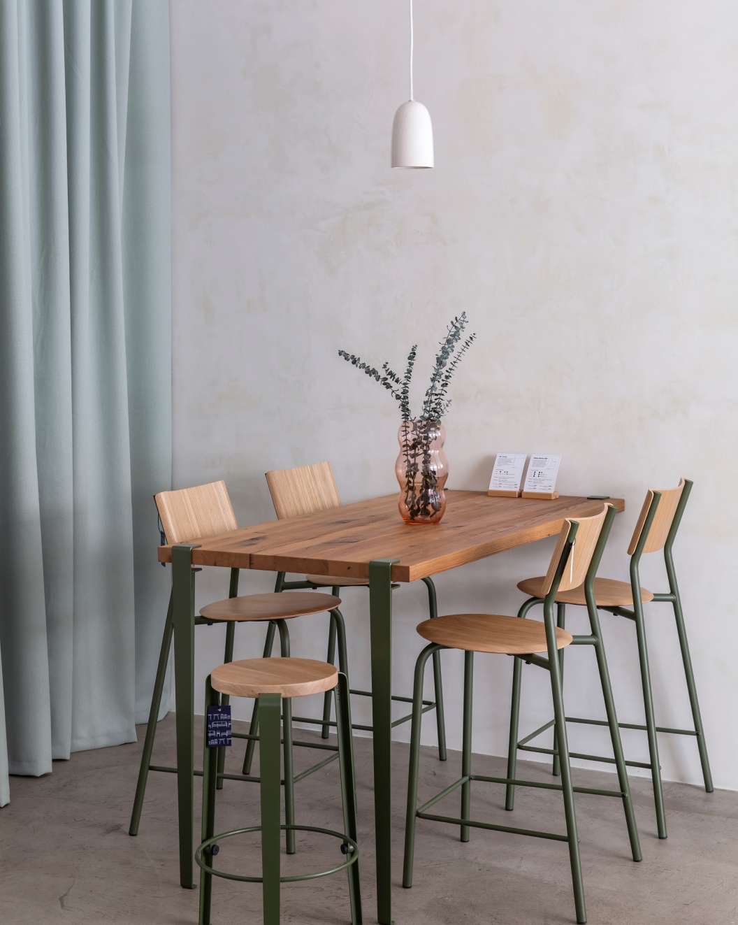 le voilà le plus gros challenge de cette collaboration. Quelques podiums ou meubles pratiques et bien pensés sont dessinés pour disposer les chaises, tabourets et pieds de tables … Les espaces sont mis en scène pour permettre au client de se projeter, et de visualiser les produits de la marque chez eux, dans leur cuisine, leur salon, leur bureau.