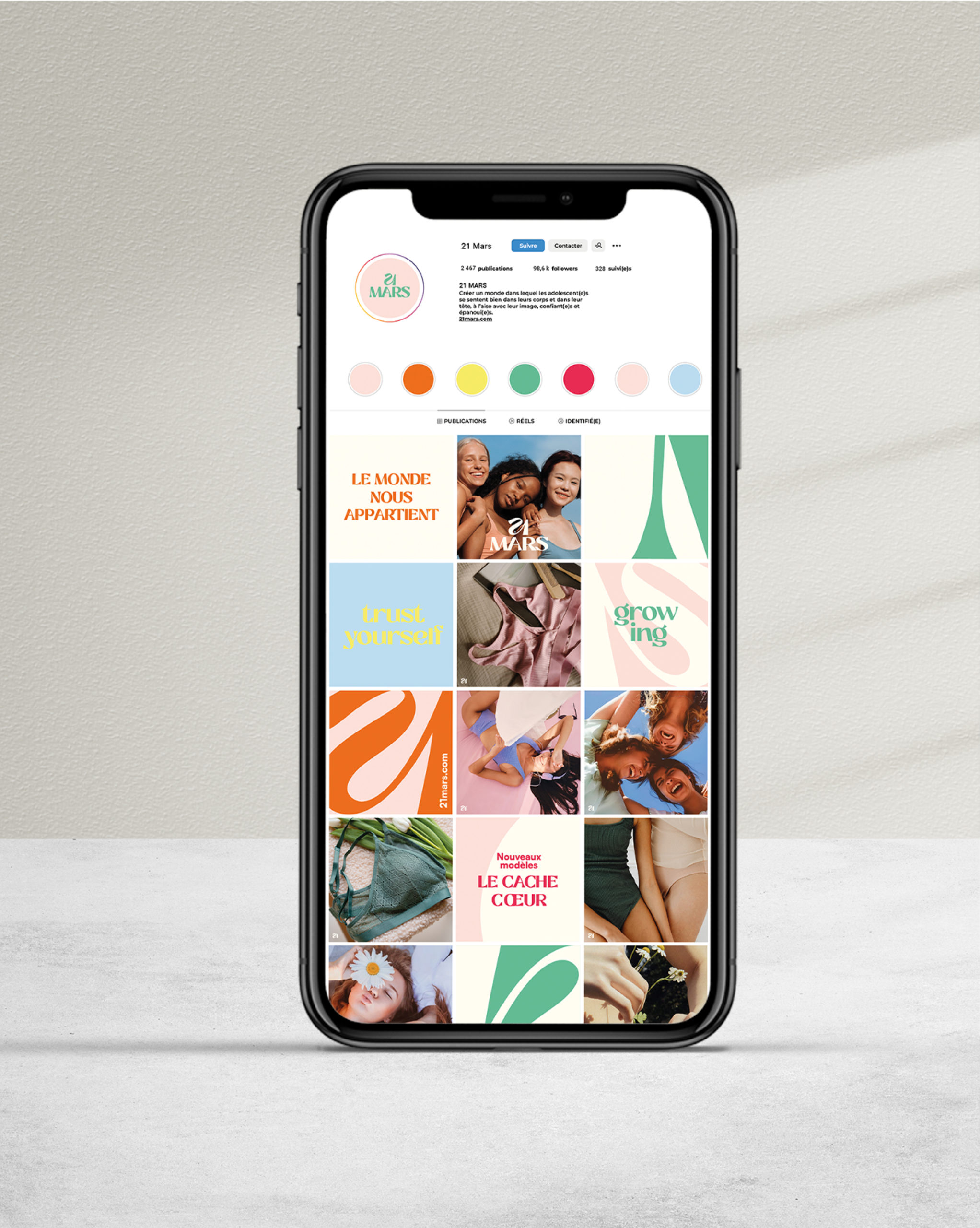 Main dans la main avec les deux fondatrices, nous avons créé la charte graphique de cette jeune marque. De la plateforme de marque au logo, en passant par les différentes typographies et couleurs, le défi est de plaire aux jeunes adolescentes tout en rassurant leurs parents.