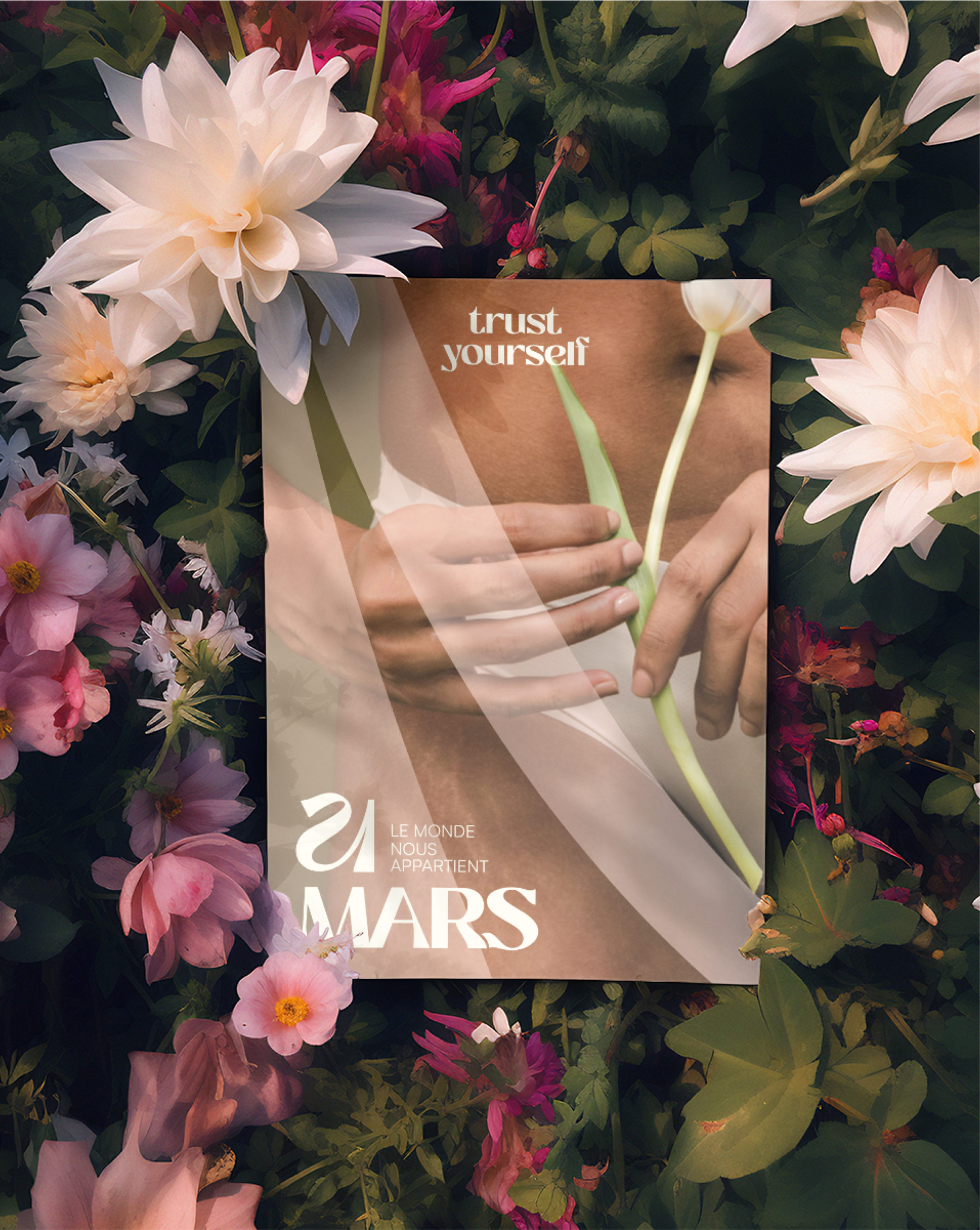 Le ruban qui serpente évoque le lien qui unit la marque aux jeunes filles. En zoomant sur des détails du logotype, un motif est créé et vient ponctuer les key visuals de la marque.