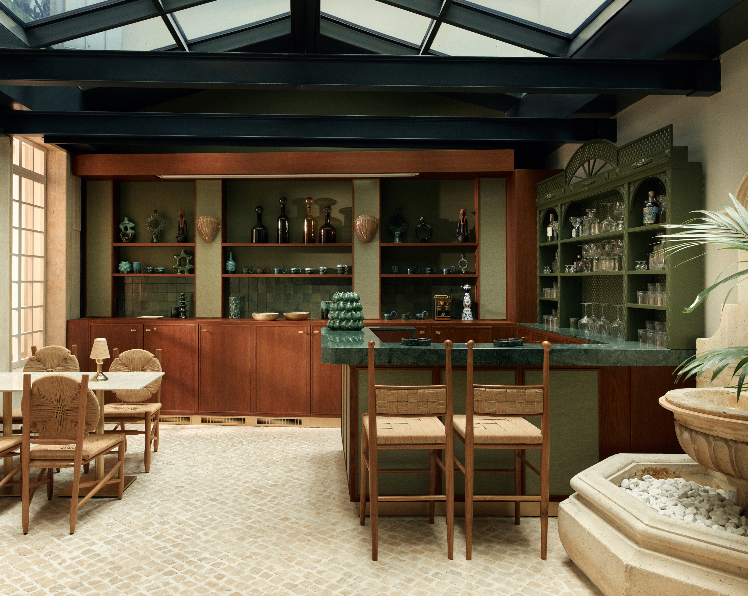 Pour parfaire la décoration de l’hôtel, le studio graphique a fait une sélection d’oeuvres et créé des affiches de différents styles, époques et provenances. L’accumulation de ces artworks variés insuffle l’esprit “maison de famille” recherché.