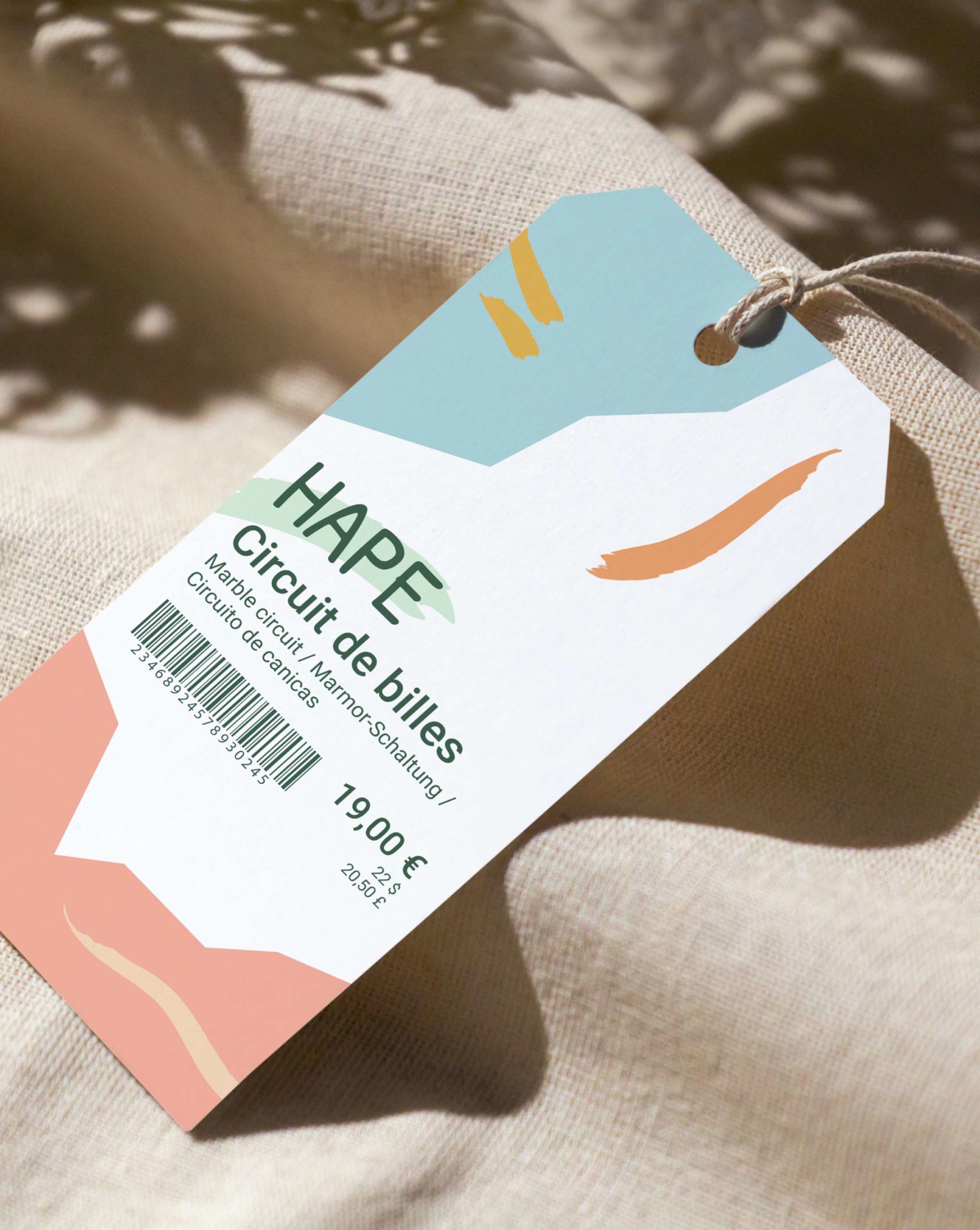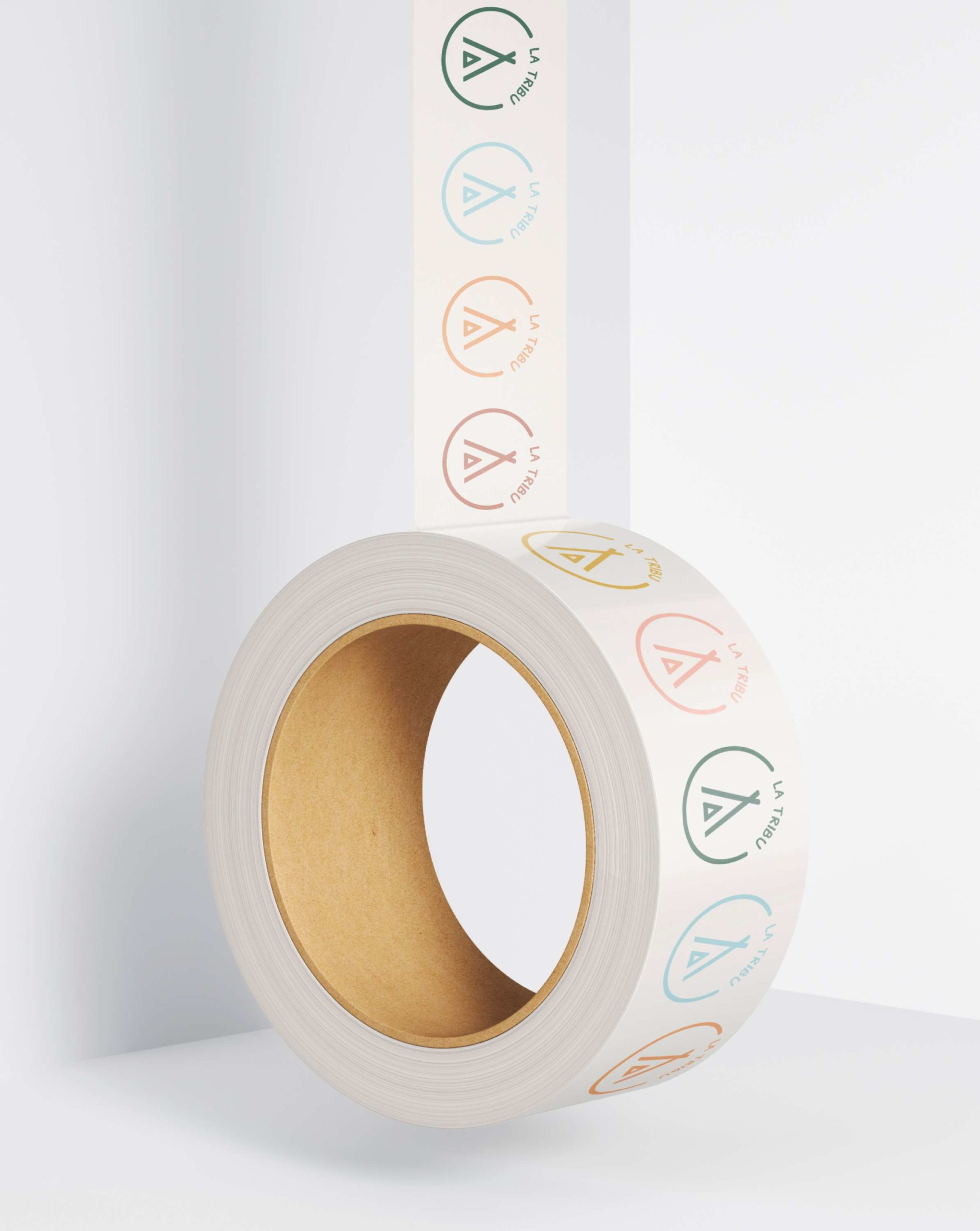 Nous avons développé une série d’objets dérivés utiles en boutique : totebag, uniformes vendeurs, étiquettes, papier cadeau et shopping bag. Une fois la DA validée, nous passons à l’étape de la réalisation, en trouvant les bons partenaires pour accompagner La Tribu dans ce déploiement de boutiques.