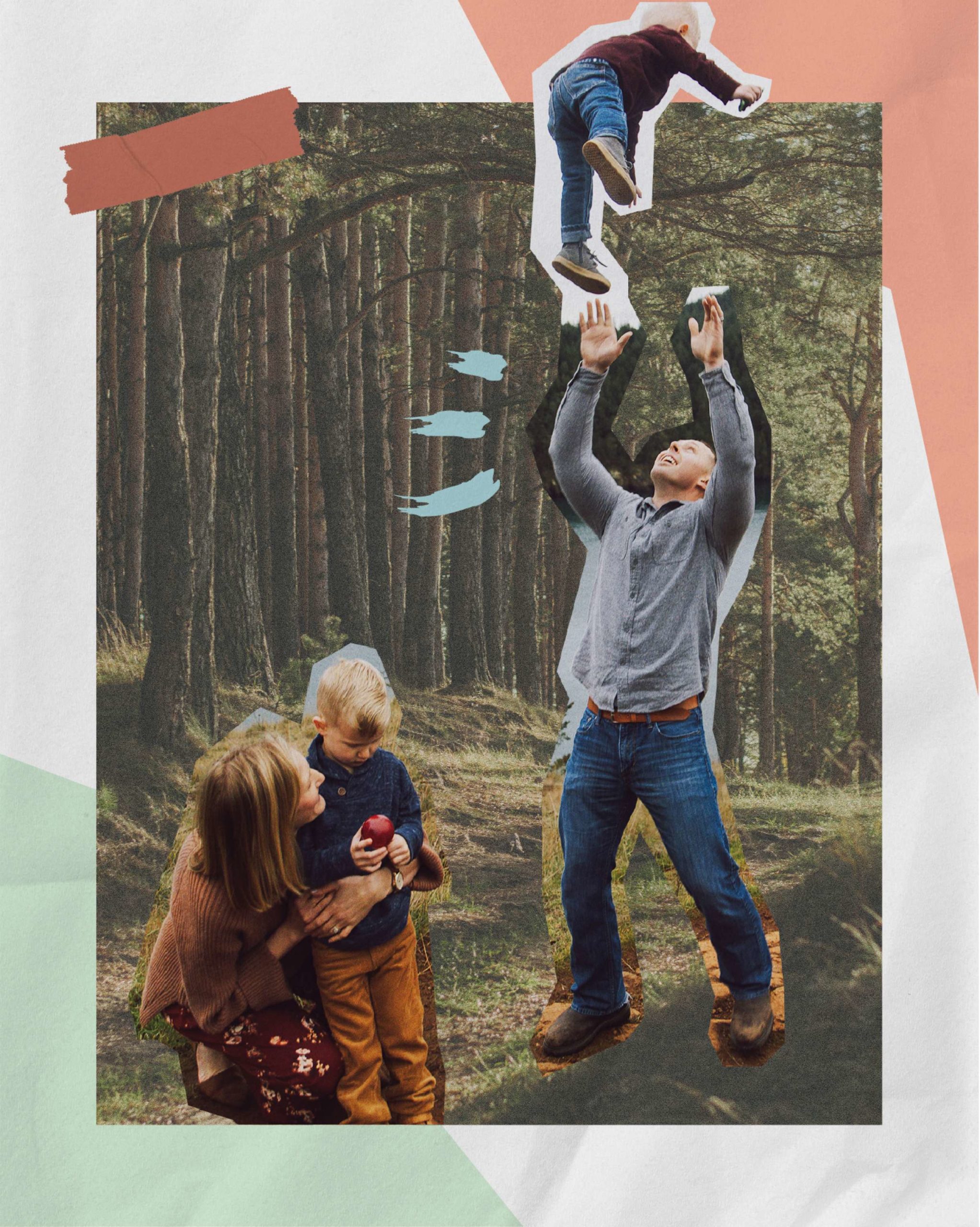 de Label Experience a mixé des photos mettant en scènes la vie de famille, et des dessins d’enfants à la peinture sur un même support, dans un esprit “collage” qui évoque les créations artistiques des touts petits.
