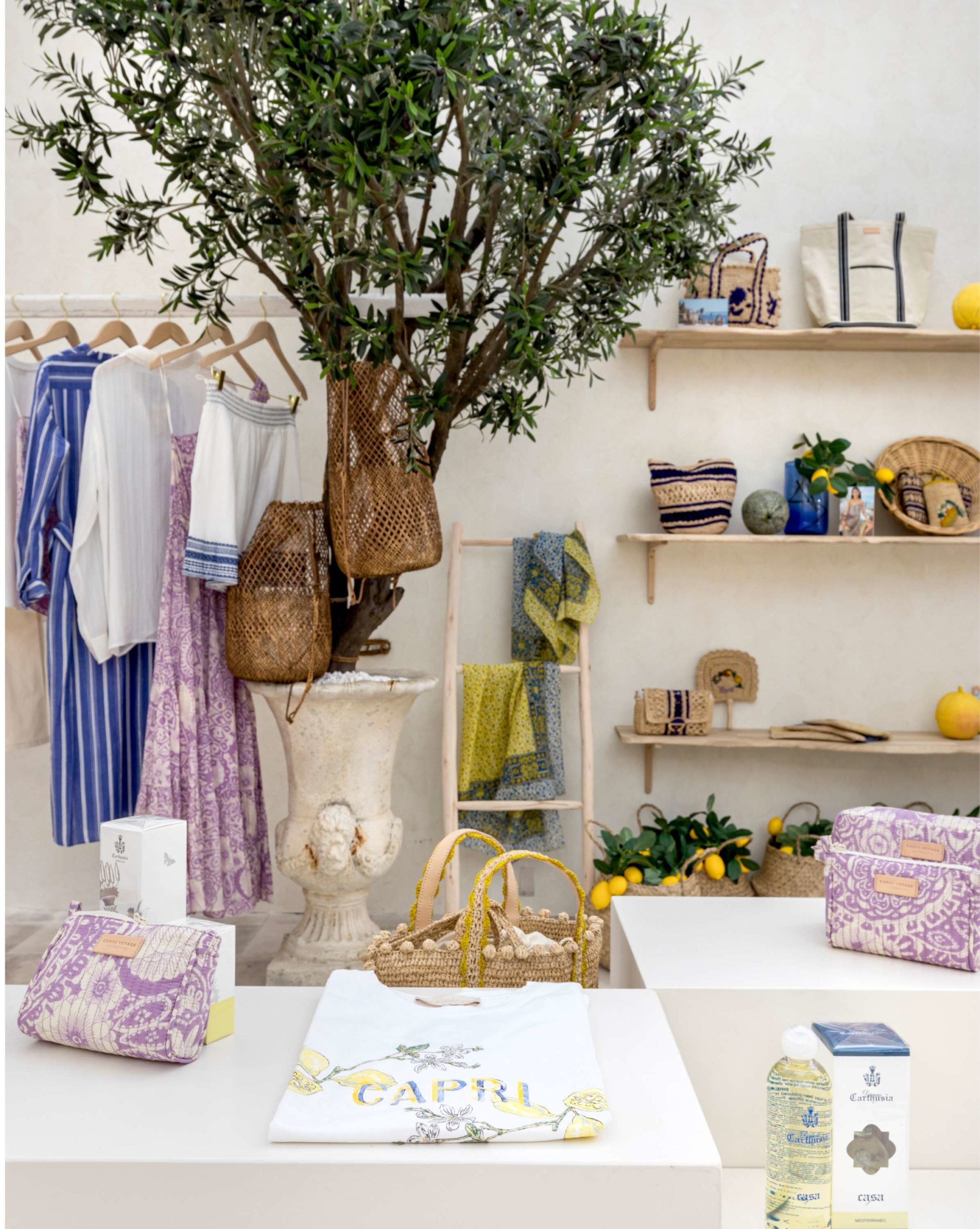 L’ambition est de reconstituer au sein du corner de 400m² les différentes facettes typiques de Capri. Structure en bois brut, cagettes, mobilier sur-mesure et canisses en bambou viennent structurer l’espace et s’inscrivent dans une mise en scène au service d’une expérience client unique.