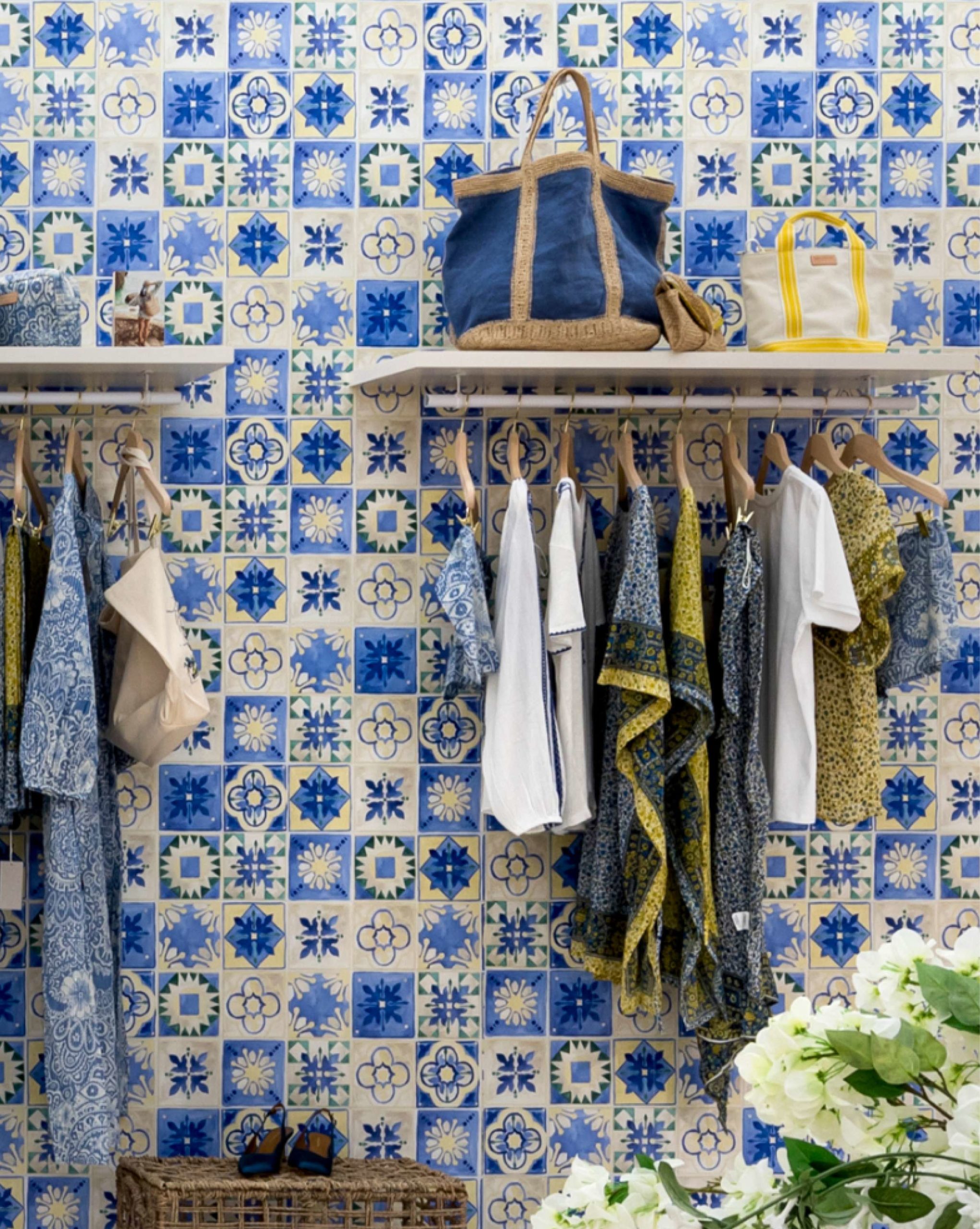 Afin de proposer un concept le plus cohérent possible, le moindre détail est pensé pour faire voyager les visiteurs. Entre éléments fleuris et accessoires lifestyle, l’offre de la griffe vient s’inscrire dans un ensemble estival.