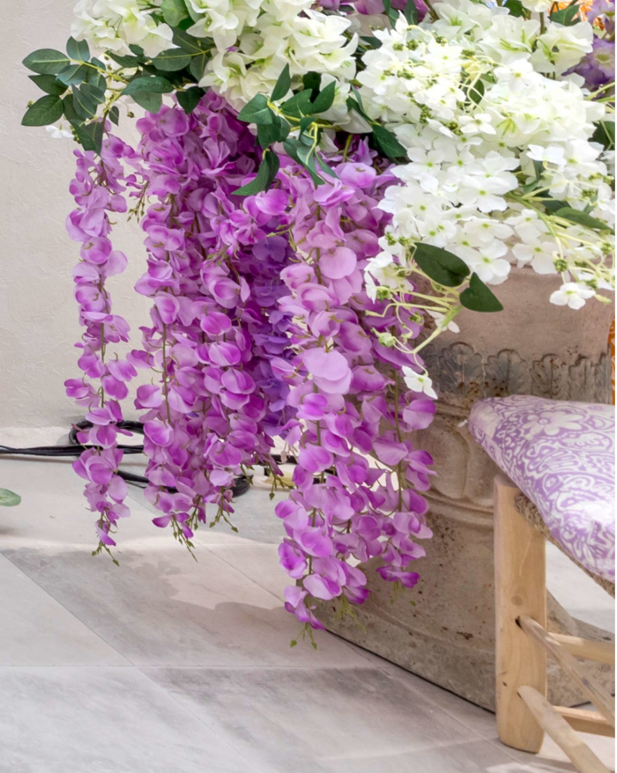 Les différents sous-espaces du corner font écho à des souvenirs de vacances : les muraux et podiums se mêlent aux vases, vaisselles et végétation typiquement italiens. La large table en bois et ses assises tressées, situées sous une structure façon pergola, évoquent les douces soirées d’été.